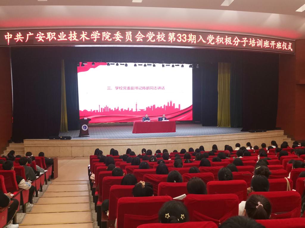 开班仪式在雄壮的国歌声中拉开序幕。陈鹏在开班仪式讲话中指出,开展入党积极分子培训,是贯彻落实全面从严治党,确保党员发展质量的需要;是加强组织培养,提高入党积极分子思想认识和党性觉悟的需要;是抓基层打基础,加强基层党支部建设的需要。他强调,入党积极分子要珍惜这次难得的学习机会,要静下心来学、深入思考学、联系实际学、严守纪律学,做到学有所获、学有所悟、学有所为。他希望入党积极分子要努力做新时代的新青年,要有矢志不渝的理想追求、爱国为民的家国情怀、勤奋好学的进取精神、求真务实的良好作风、艰苦奋斗的优秀品质,坚定党的信念,用实际行动来争取早日加入党组织。