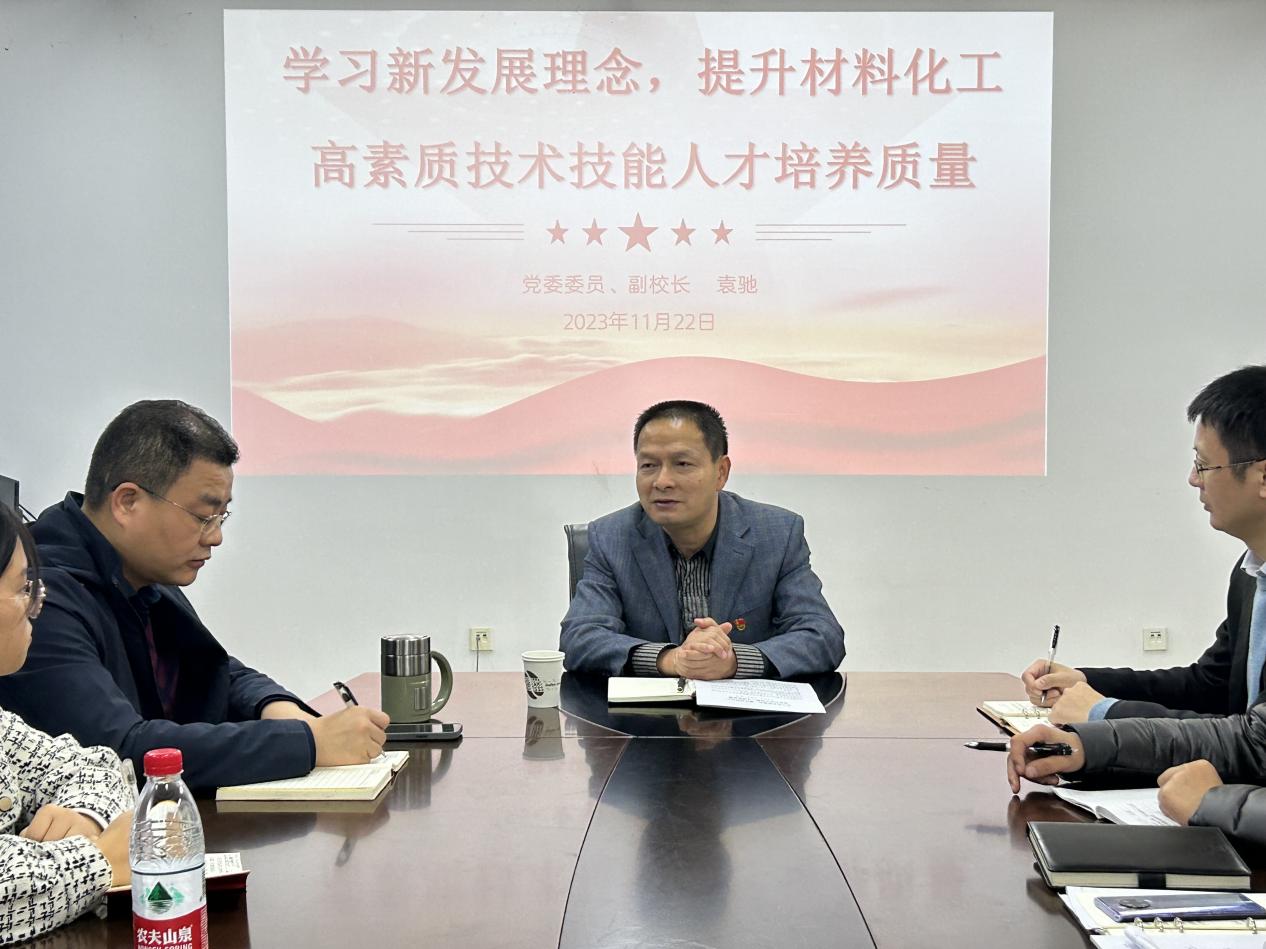 11月22日下午,学校党委委员、副校长袁驰在格致楼二楼会议室为新材料与化学工程学院全体党员讲授“学习新发展理念,提升材料化工高素质技术技能人才培养质量”专题党课。