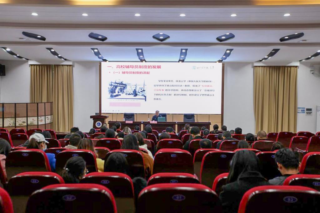 四川师范大学党委学生工作部部长、武装部部长、中国高等教育学会辅导员研究分会第三届理事胡尚峰应邀来kaiyun官网作了题为《高校辅导员专业发展的问题困境和实现路径》的专题讲座。在长达两个多小时的专题辅导报告中,胡尚峰就高校辅导员制度的发展、专业化是高校辅导员发展的必然选择、高校辅导员专业化的实现路径、如何成为一名优秀辅导员等四个方面作了详细阐述。