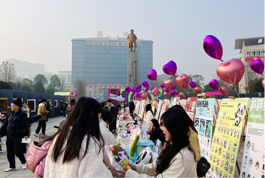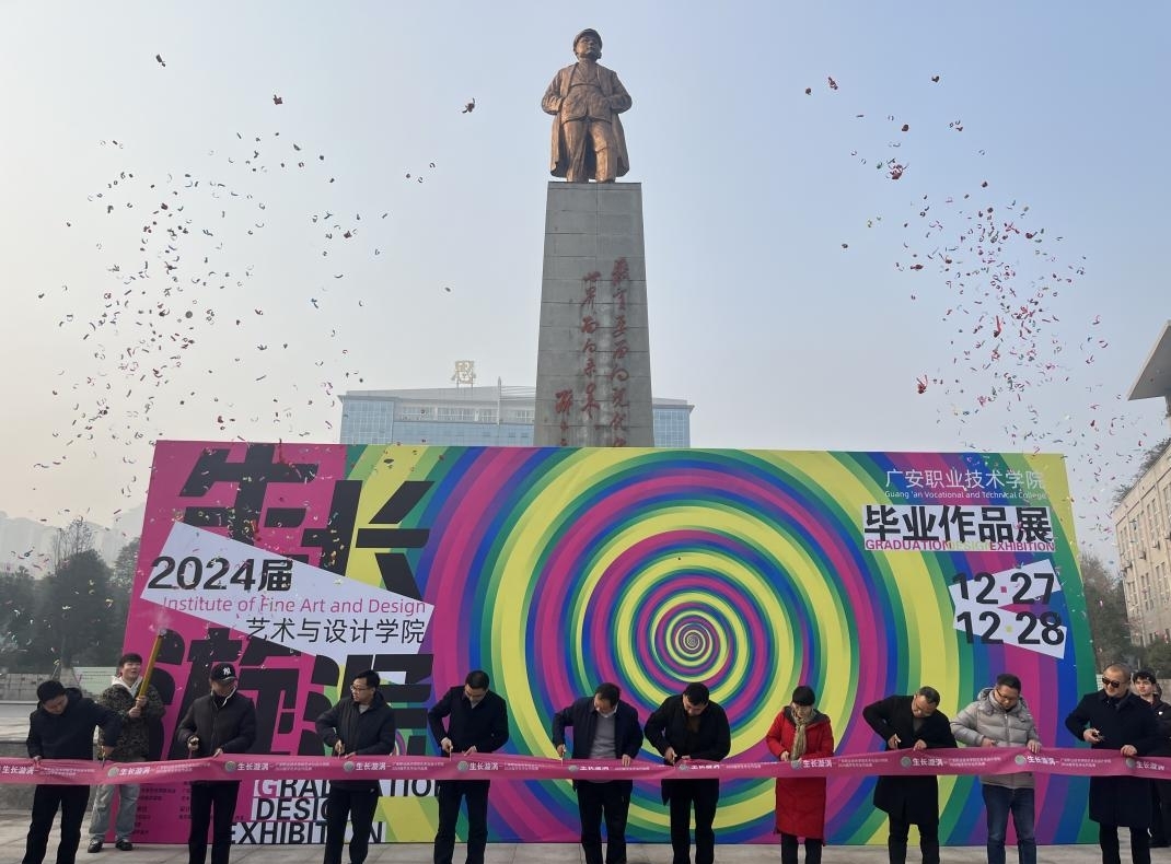 12月27日,艺术与设计学院2024届学生毕业作品展在小平广场开展。市二级巡视员、市文艺评论家协会主席侯立新,市文联党组成员、秘书长周永生,学校党委委员、组织部部长白文春,市博物馆馆长唐云梅,市社科联办公室主任王曲波等出席开幕式并剪彩,活动由学院院长王雪松主持。