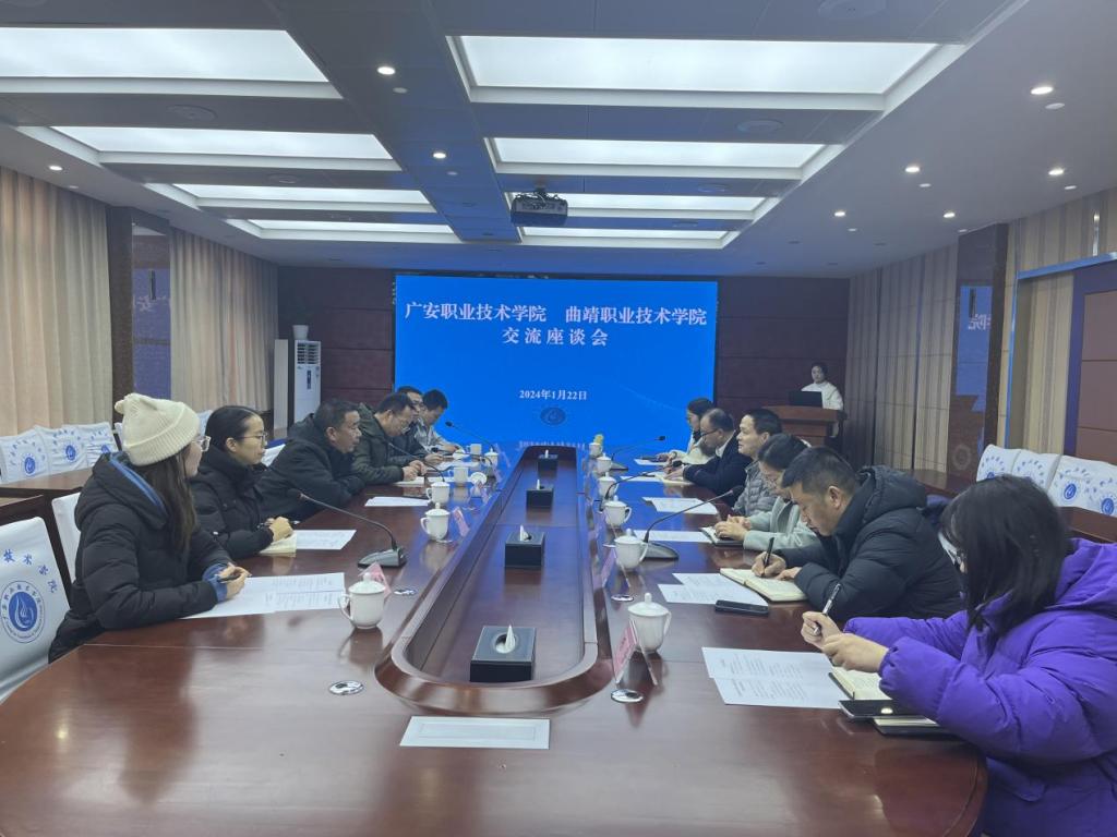 2024年1月22日上午,曲靖职业技术学院副院长海宇修一行到校对学校建设及化工专业实训基地等方面经验进行交流。学校党委委员、副校长袁驰主持座谈会。