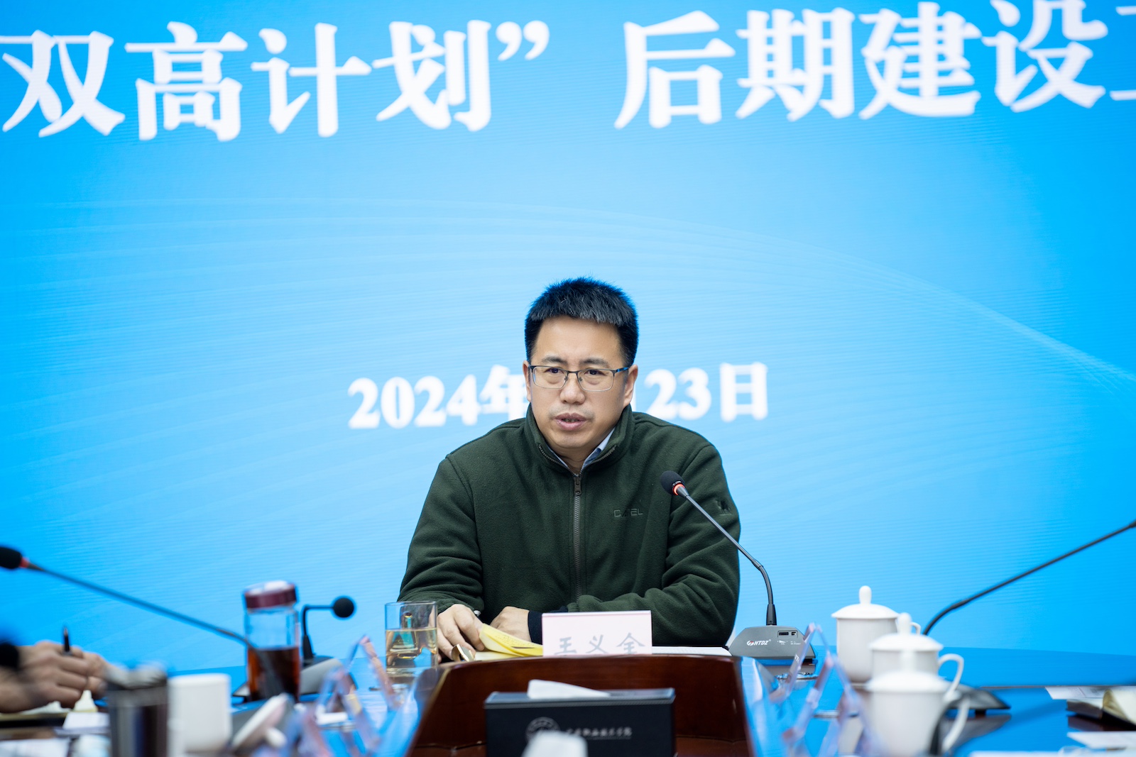 王义全校长首先对省级“双高计划”前期建设工作、中期绩效评价成绩给予了肯定,指出前期建设有序推进、成效明显、广泛认可,接着明确了后期建设的保底目标、工作目标和理想目标,最后对后期怎么建和终期验收提出了三点要求:一是明确省级“双高计划”后期建设的目标任务,要求大家认真研读、全面落实国省现代职业教育体系改革重点建设任务和“双高计划”本身任务要求,聚焦高质量人才培养和高质量社会服务两大核心任务,考虑学校发展所处阶段,一手抓重大项目成果,一手抓人才培养整体质量,将各职能部门和二级学院的重点工作纳入“双高计划”建设任务。二是优化和调整建设方案和任务书,建设事项要明确化、建设工作要项目化、建设绩效要指标化;三是有序有效推进《建设方案》《建设任务书》的落实、落地,形成年度任务书和年度工作要点。