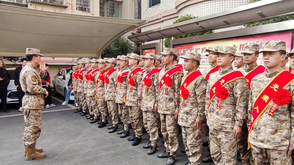 学子们身着戎装、胸戴红花、肩披绶带、士气高昂,迈着整齐的步伐,分批次奔赴到祖国边疆、绿色军营,用青春和热血报效祖国。