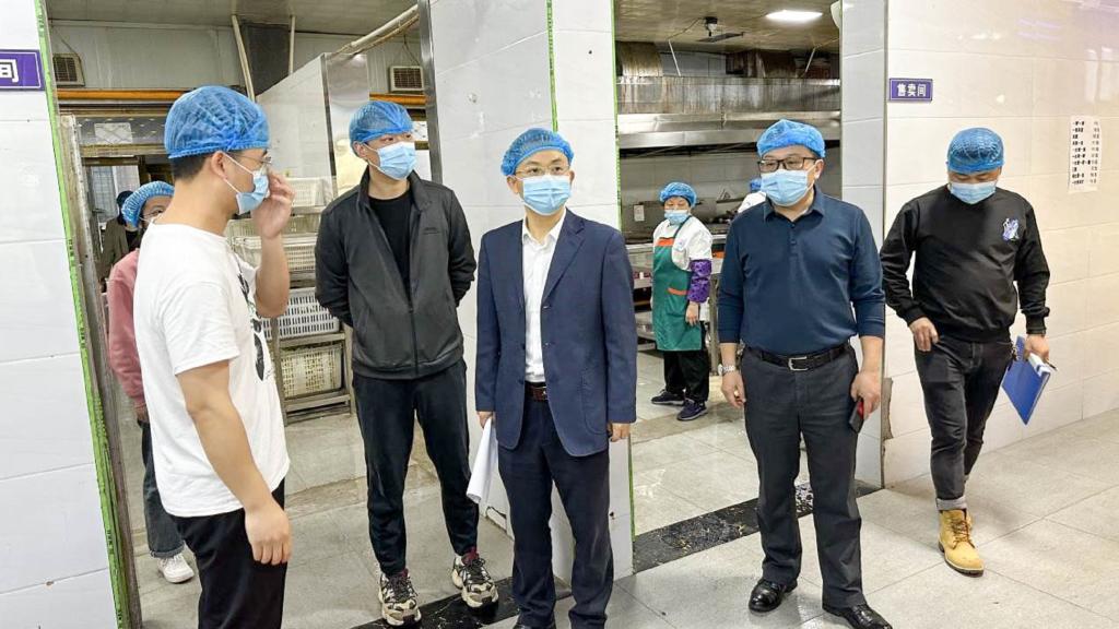 随后,检查组来到了奎阁校区食堂。陈鹏对食堂的食品卫生、餐具消毒、食品加工流程等进行了细致入微的检查。他强调食品安全直接关系到师生的身体健康,必须严格把关,确保每一道菜品都符合卫生标准。
