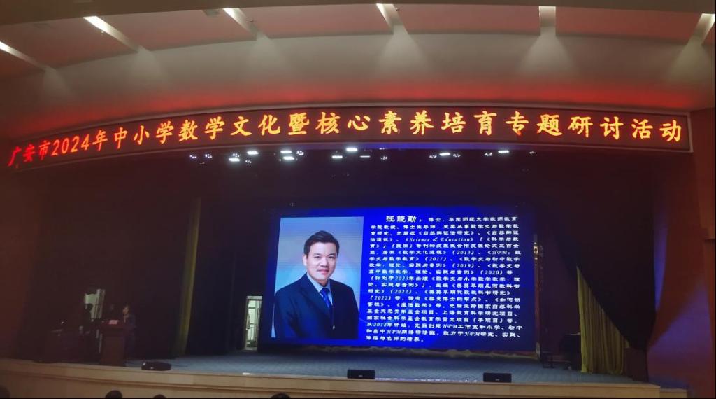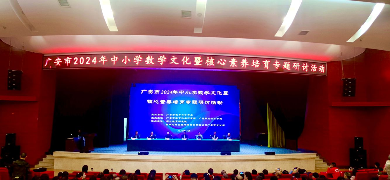 4月10日,kaiyun登录中国入口登录携手广安市教育和体育局、广安市教育科学研究所,共同举办了一场聚焦中小学数学文化暨核心素养培育的专题研讨活动,广安市教育与体育局局长张建超,学校党委委员、副校长袁祖洪出席活动并致辞。广安各区市县数学教研员、骨干教师、一线教师及师范学院师生共700余人参加。