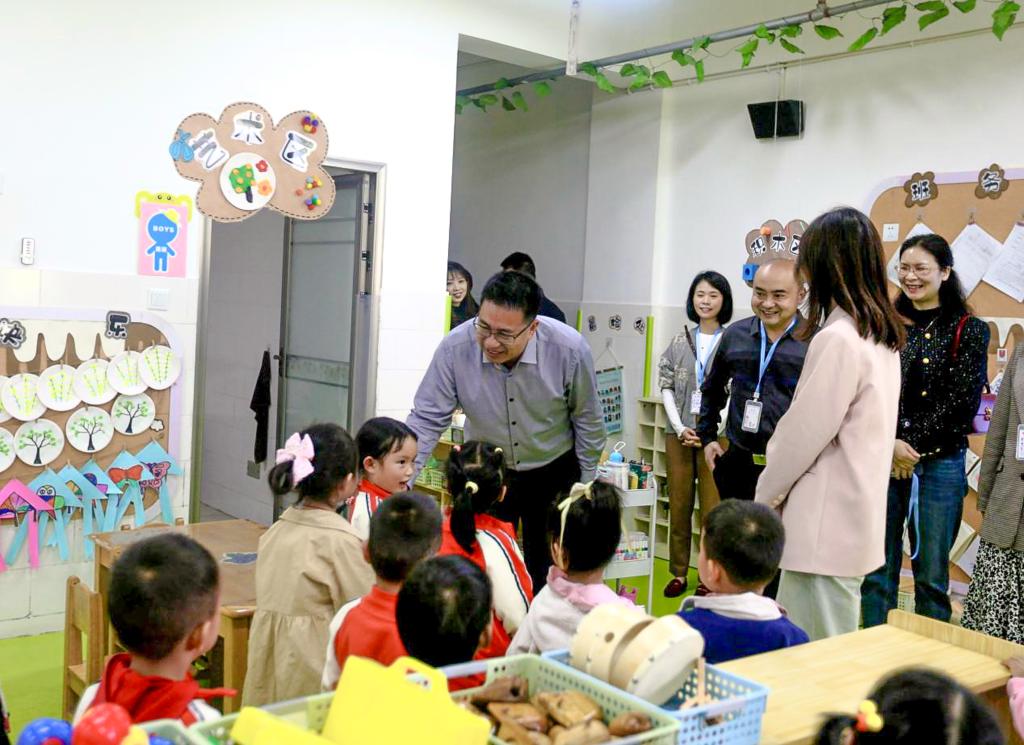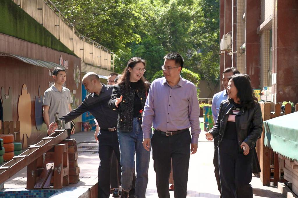 在调研现场,王义全一行深入幼儿园,实地察看了前锋区代市第二幼儿园、广安区两路口幼儿园、广安市加德学校幼稚园、广安市第五幼儿园的园所环境、硬件设施和各功能室的设置与使用等情况。调研组详细查看了园所的户外游戏场地、楼廊文化、活动室,深入班级近距离观察幼儿游戏,全面了解其办园理念、特色活动开展等情况。