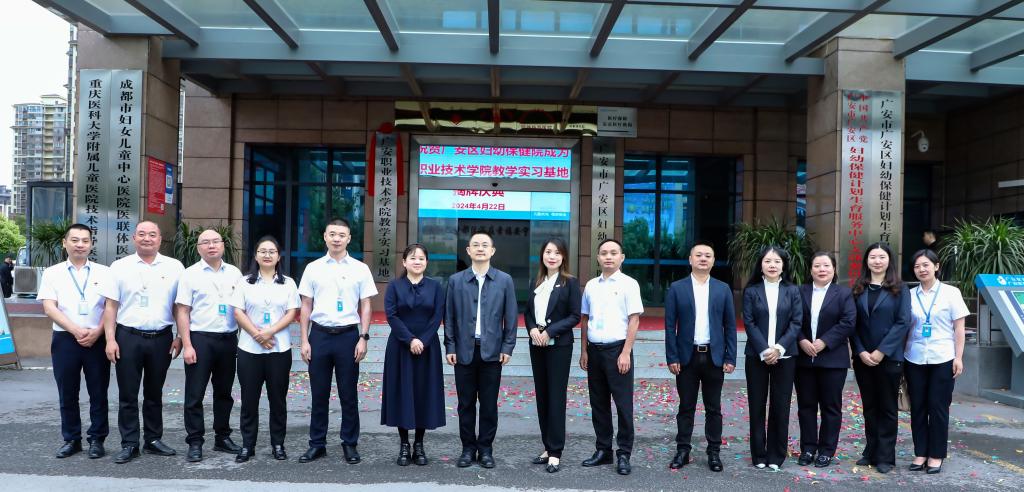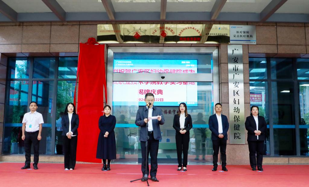 医学院院长杨书琴,副院长贺洪军,广安区卫生健康局党组书记张伟,广安区妇幼保健党支部书记王平,院长王海兵,副院长李萍及有关人员参加揭牌仪式,杨书琴和王平共同为实习基地揭牌。