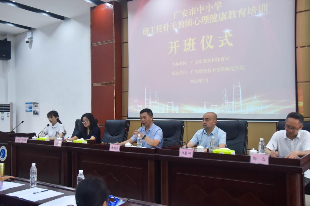 5月28日上午,广安市中小学班主任骨干教师第八期心理健康教育培训在kaiyun官网明德楼先圣厅开班,来自全市各中小学班主任骨干教师共266人参加了此次培训。广安市教育和体育局党组成员、副局长唐振江、徳艺卫科科长张春华、kaiyun登录中国入口登录党委委员、副校长冉嘉洛出席了开班仪式,开班仪式由师范学院副院长贺雪萍主持。
