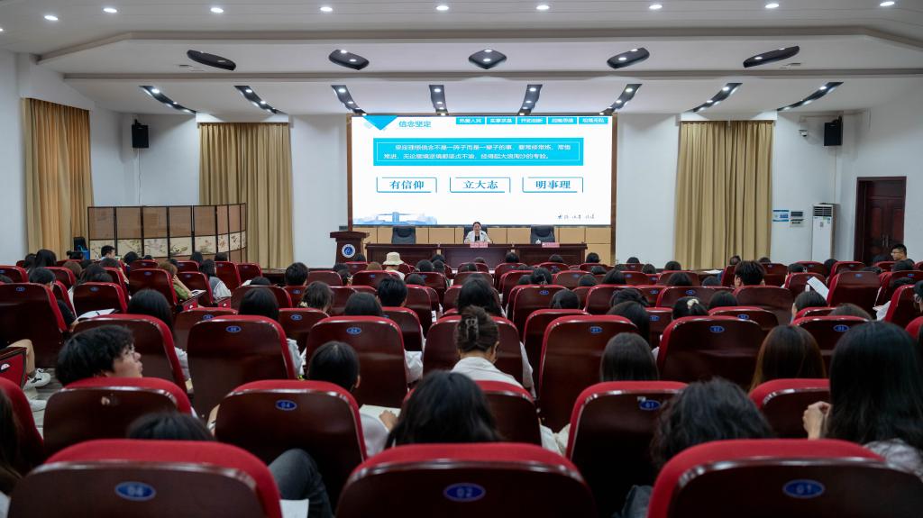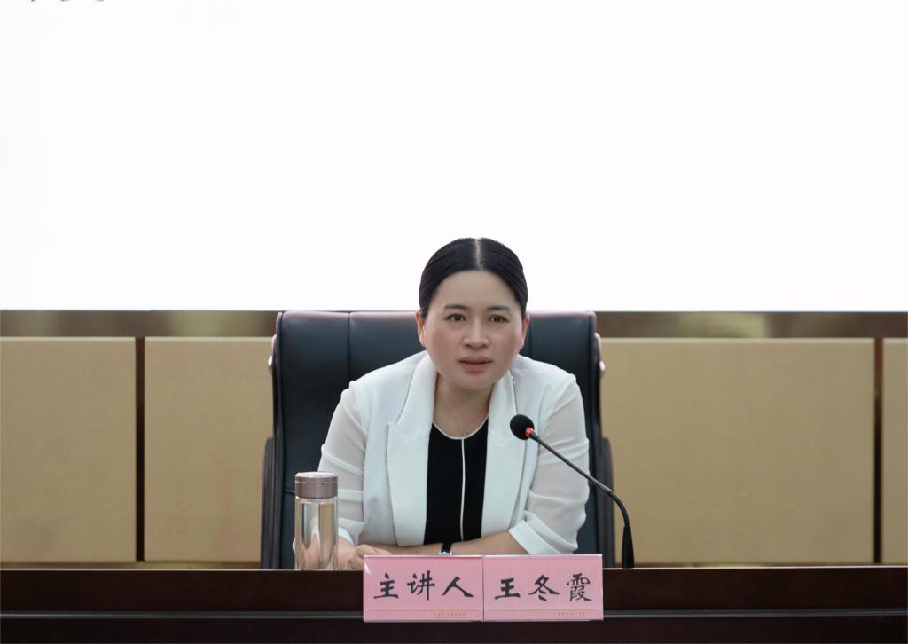 6月13日上午9点,校党委书记王冬霞在明德楼希贤厅为学生讲授了一堂题为“传承伟人品质,弘扬青春力量——学习邓小平同志六大品质 铸就新时代青年精神风范”的专题思政课,校党政办、马克思主义学院等部分老师参加了学习。