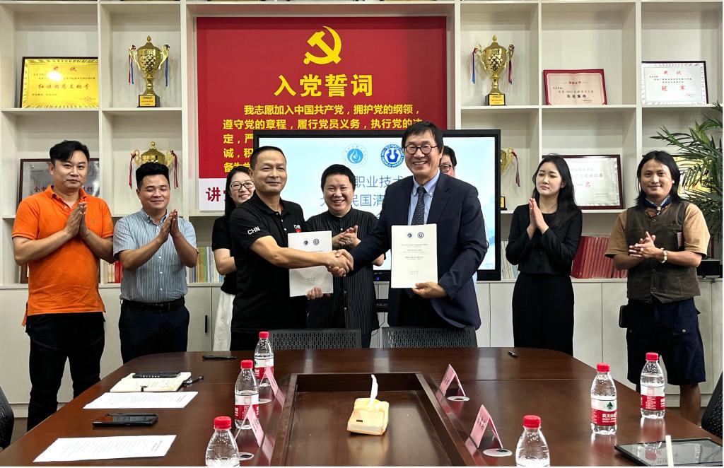 袁驰代表学校对金敬植院长一行到访kaiyun官网表示欢迎,希望两校加强国际交流与合作,共同培养多能一专的高素质技能型人才。清州大学国际交流处宋智英女士对清州大学基本情况进行了介绍,彭丽副处长介绍kaiyun官网国际交流合作相关情况,在交流发言中,金敬植院长对来到邓小平先生家乡非常高兴,也表达了两校应建立长期友好关系,为培养优质的学生而共同努力。随后,金敬植院长和袁驰副校长分别代表两校签订了国际交流合作意向书。