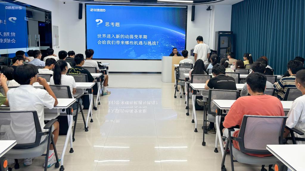 思想政治课上,李俊泓还系统总结了当前世界地缘安全复杂现状、多极秩序分化整合、全球经济艰难复苏与极端天气加剧全球安全风险的世界形势。在对国际宏观形势进行分析的基础上,他聚焦俄乌关系、巴以冲突和非洲国际形势三个焦点问题,进行了深入系统分析和阐释。随后,他以中国外交政策为立足点,详细解析了中国政府所采取的外交政策及深层次原因。他勉励同学们要开阔视野,关心国际国内形势,正确理解党和政府制定的方针政策,刻苦学习,增长本领,不负韶华,将自己的青春和奋斗融入中华民族伟大复兴的伟业之中。