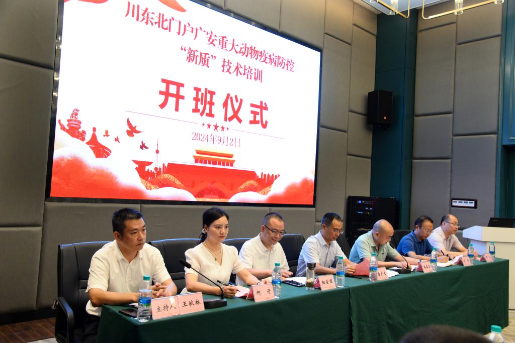 9月2日上午,川东北门户广安重大动物疫病防控“新质”技术培训开班仪式在锦江都城酒店报告厅举行。省动物疫病预防控制中心主任阳爱国、广安市人力资源和社会保障局党组成员、副局长唐广生、广安市农业农村局总畜牧师刘伟、学校党委委员、副校长冉嘉洛出席了本次开班仪式,仪式由学校继续教育学院院长王秋林主持。
