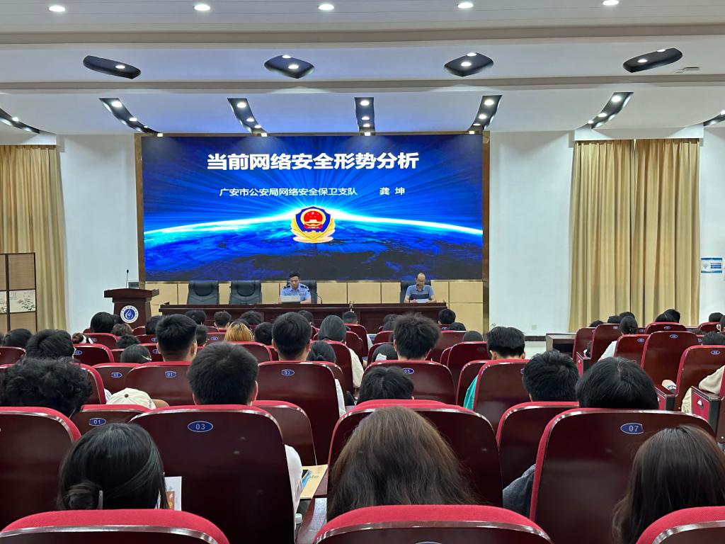 下午时分,希贤厅内座无虚席,200余名师生齐聚一堂,共同聆听由广安市公安局网络安全保卫支队资深警官龚坤带来的精彩演讲。讲座由教育技术与信息中心主任朱龙主持。