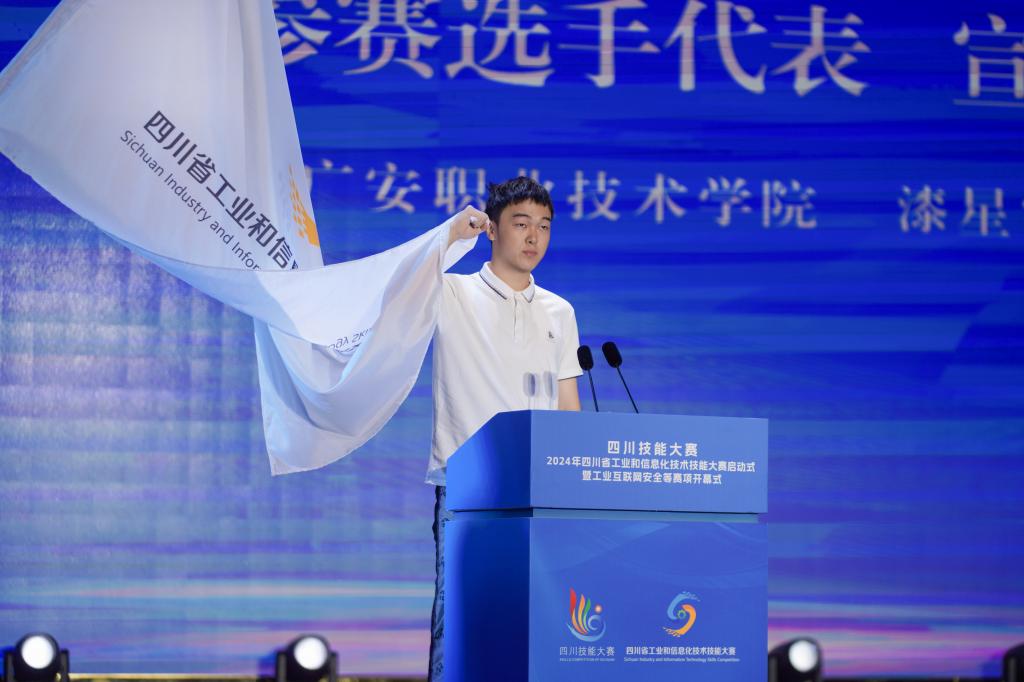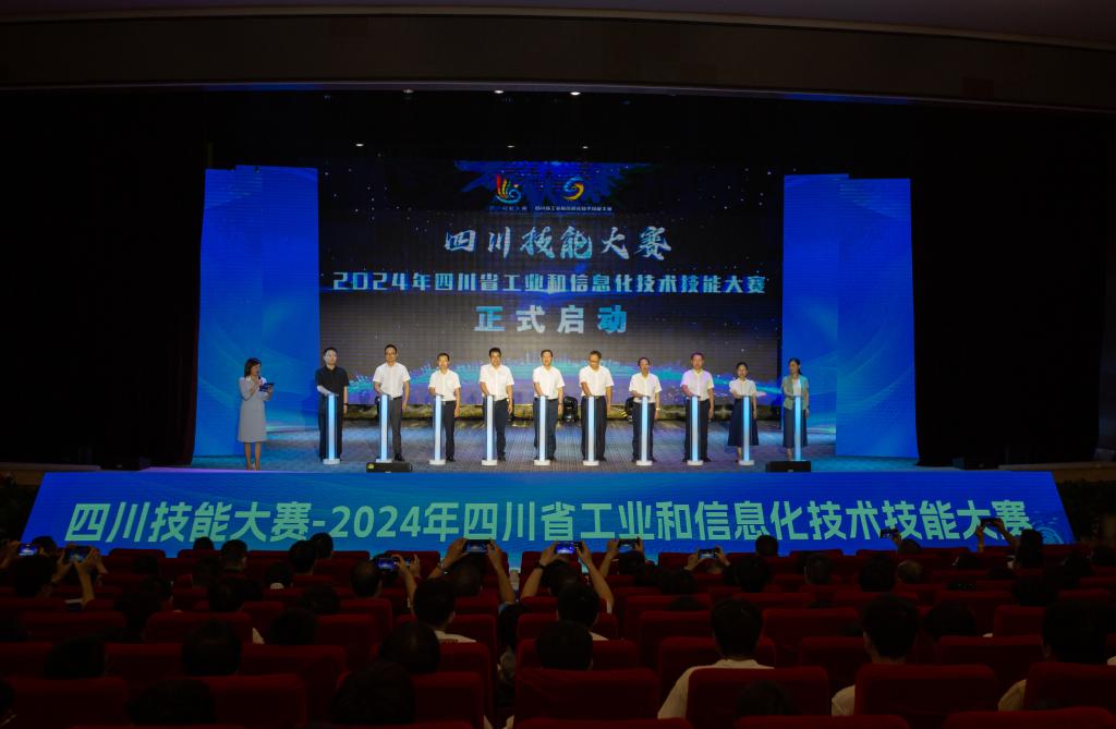 伴随着启动柱的点亮和会场耀眼的荧光,四川技能大赛—2024年四川省工业和信息化技术技能大赛正式启动。