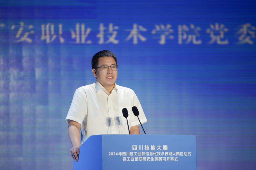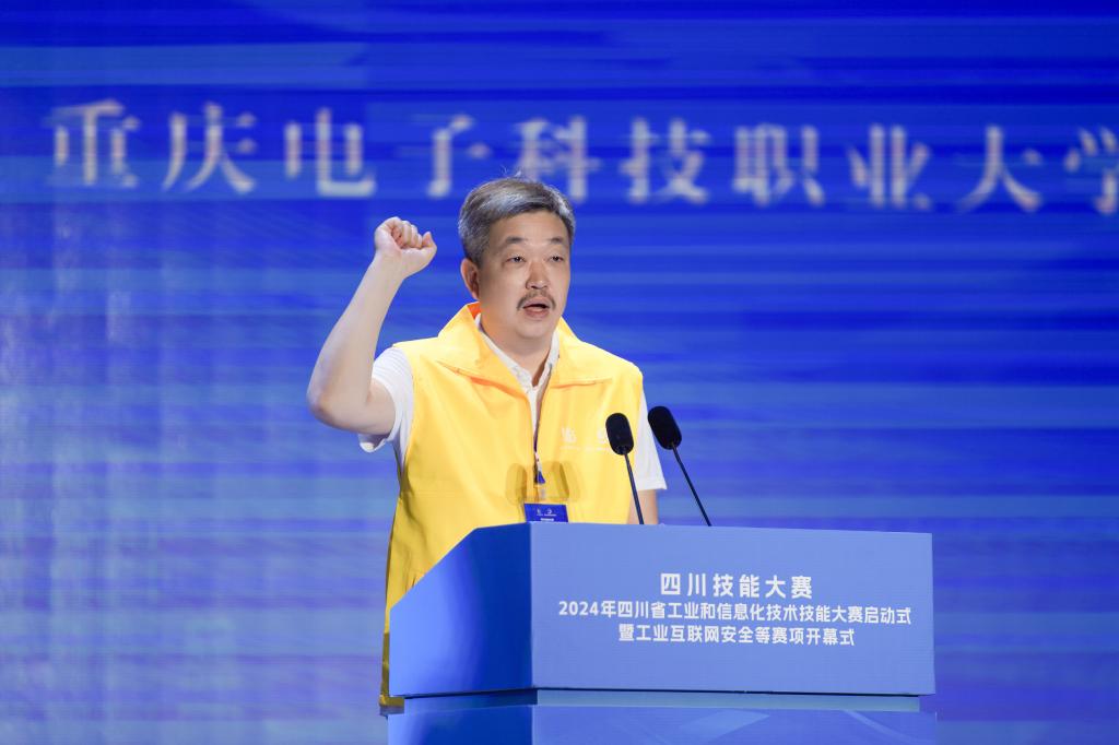 何继军在致辞中指出,随着传统产业的升级改造不断加快、新兴产业的迅速发展以及适应经济全球化的要求,技能人才的重要地位日益凸显。四川技能大赛—2024年四川省工业和信息化技术技能大赛是四川省一类竞赛,影响广泛,权威性强,是选拔和发掘高素质的技能人才的重要平台,对深化全省技术技能人才培养具有十分重要的意义。希望大赛裁判员和工作人员遵守竞赛规则,秉持公平、公正、公开的原则,严守标准、严格执裁、认真负责、忠于职守,确保大赛顺利进行。