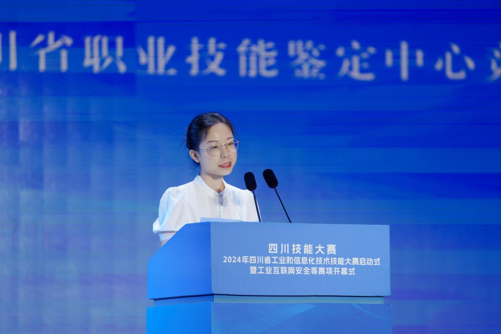 郭晓静表示,近年来,省人社厅会同经信厅等有关部门、行业,积极组织参与世赛、国赛和行业技能大赛,打造以“四川工匠杯”职业技能大赛为代表的职业技能竞赛品牌,一大批“天府工匠”、技术能手脱颖而出,充分展示了四川技能人才的精湛技艺和顽强品质,引领广大职工在治蜀兴川大业中焕发巨大活力。今年,是举办四川省工业和信息化技术技能大赛的第三年,赛聚焦工业互联网安全、5G+虚拟现实开发应、工业机器人技术应用、物联网安装调试、人工智能工程技术、新能源汽车智能化技术等优势产业和未来需求领域,将选拔出优胜选手代表全省参加工信部举办的全国技术技能大赛,为中华人民共和国第三届全国技能大赛选拔优秀选手。