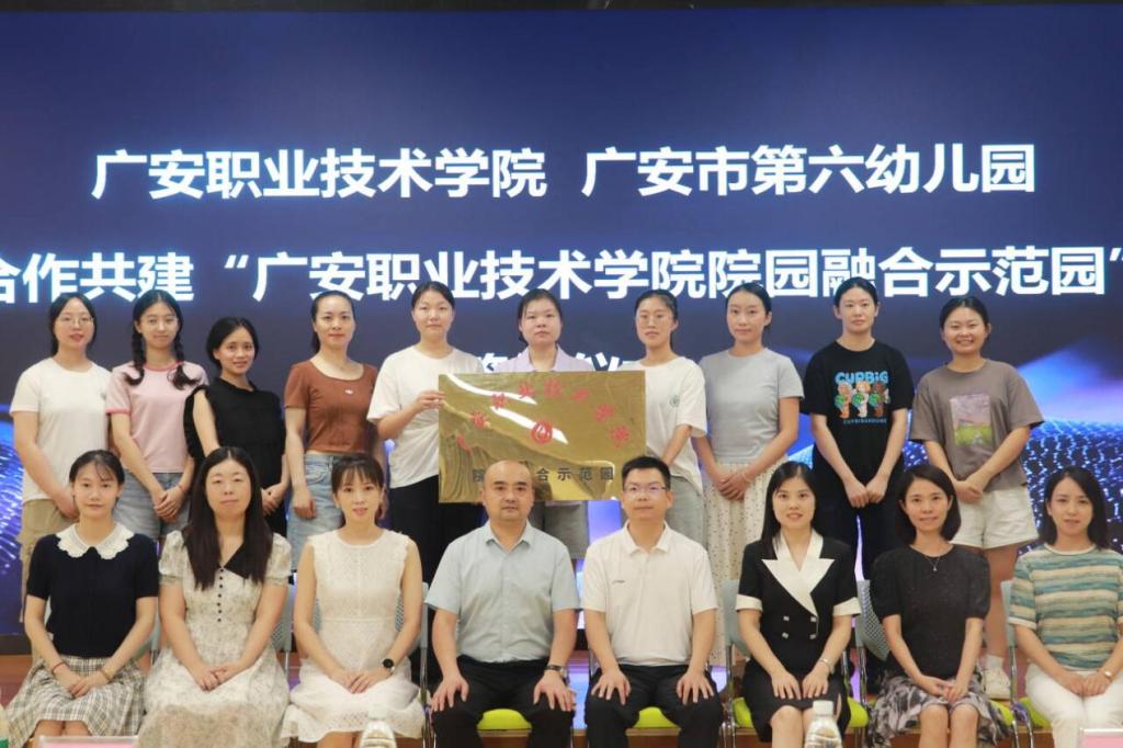 凝心聚力,共启新程。学校与广安市第六幼儿园正式携手,共同开启合作新篇章。双方将在党的建设、人才培养、专业建设、师资培训、科学研究等方面展开全方位、宽领域、多层次的交流与合作,实现优势互补、资源互通、共生互融,共同推动学前教育高质量可持续发展。