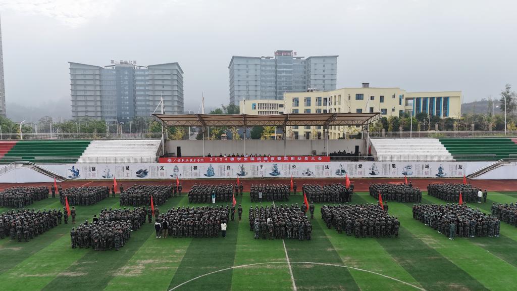 2024年10月8日上午8:30,学校2024级学生国防教育暨军训动员大会分别在滨江校区和奎阁校区同时举行,学校在家校领导出席大会。