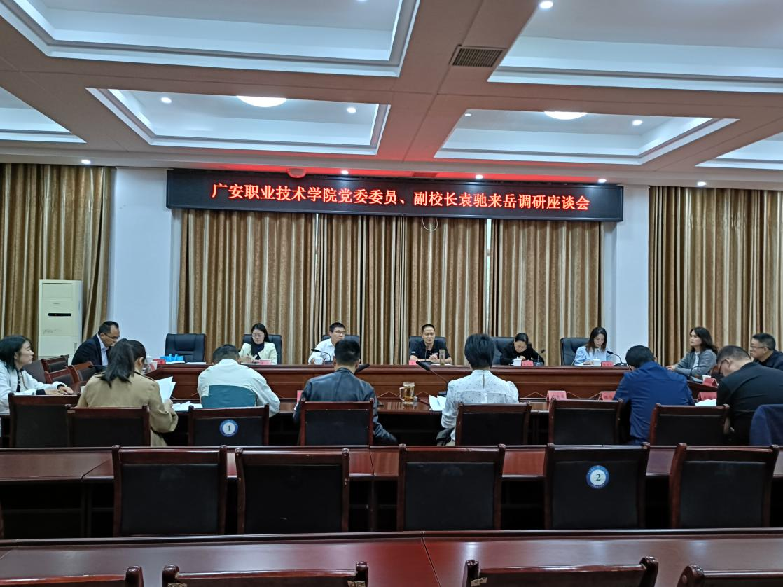 10月12日上午,学校党委委员、副校长袁驰带队赴岳池经开区就校地合作、校园共建产业学院进行调研,并与园区企业进行座谈,四川岳池经开区管委会副主任魏琴主持会议。会后,袁驰一行参观了岳池川渝合作生物医药城规划馆。