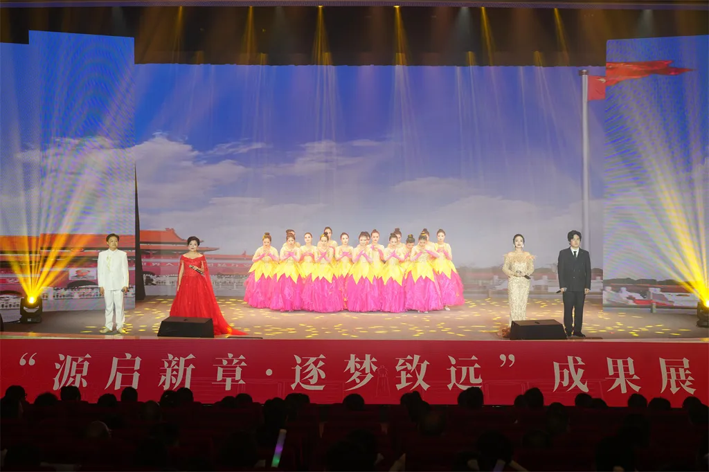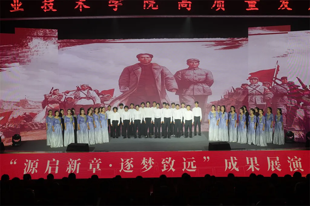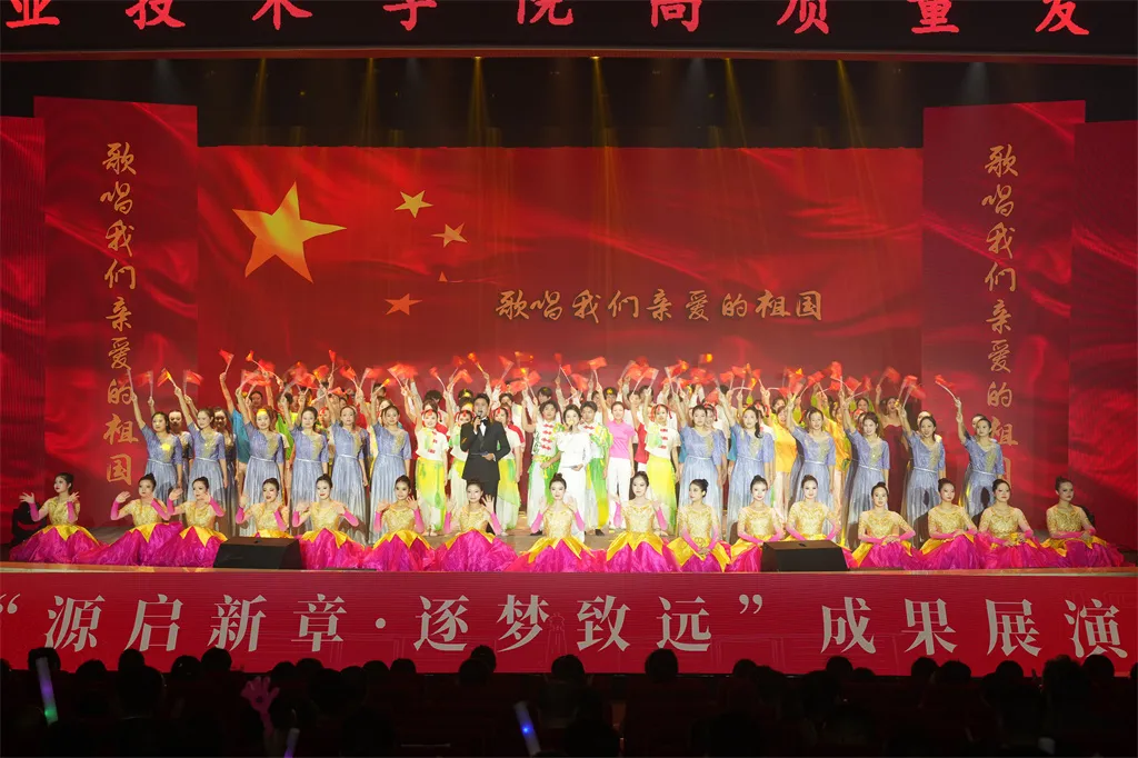 师生为来宾和校友呈现了一场精彩纷呈的成果汇报展演《源启新章・逐梦致远》。《盛世欢歌》《流金岁月》《宕渠双竹连响》《广职华章》《时光礼赞》《国粹风韵》《领航》等节目,展示了韵与律的结合,意与境的融汇。节目再现了学校发展历程,回顾了几代广职人拼搏奋斗历程,展示出全体广职人扬帆再起航、再谱新华章的决心。
