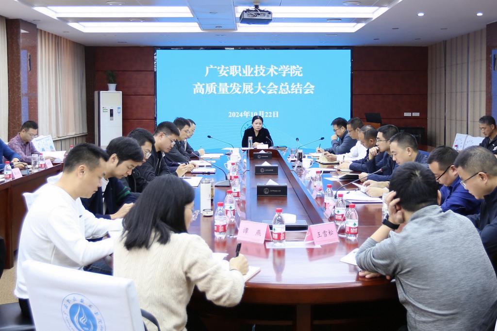10月22日上午,学校在春晖楼四楼会议室召开高质量发展大会总结会,会议由党委书记王冬霞主持,学校党政领导班子成员和高质量发展大会各专项工作组组长参加会议。