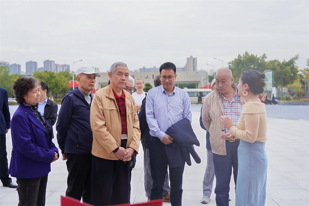 在小平广场,肖辞源一行参观了学校高质量发展成果展。王义全在汇报中对老教授协会一行来校指导交流表示热烈欢迎,并就学院党建引领、人才培养、课程建设、校企合作、技能竞赛等情况作了简要介绍,希望老教授们继续关心、关注、支持广职院,宣传广职院,共同推动学校教育事业的进步。