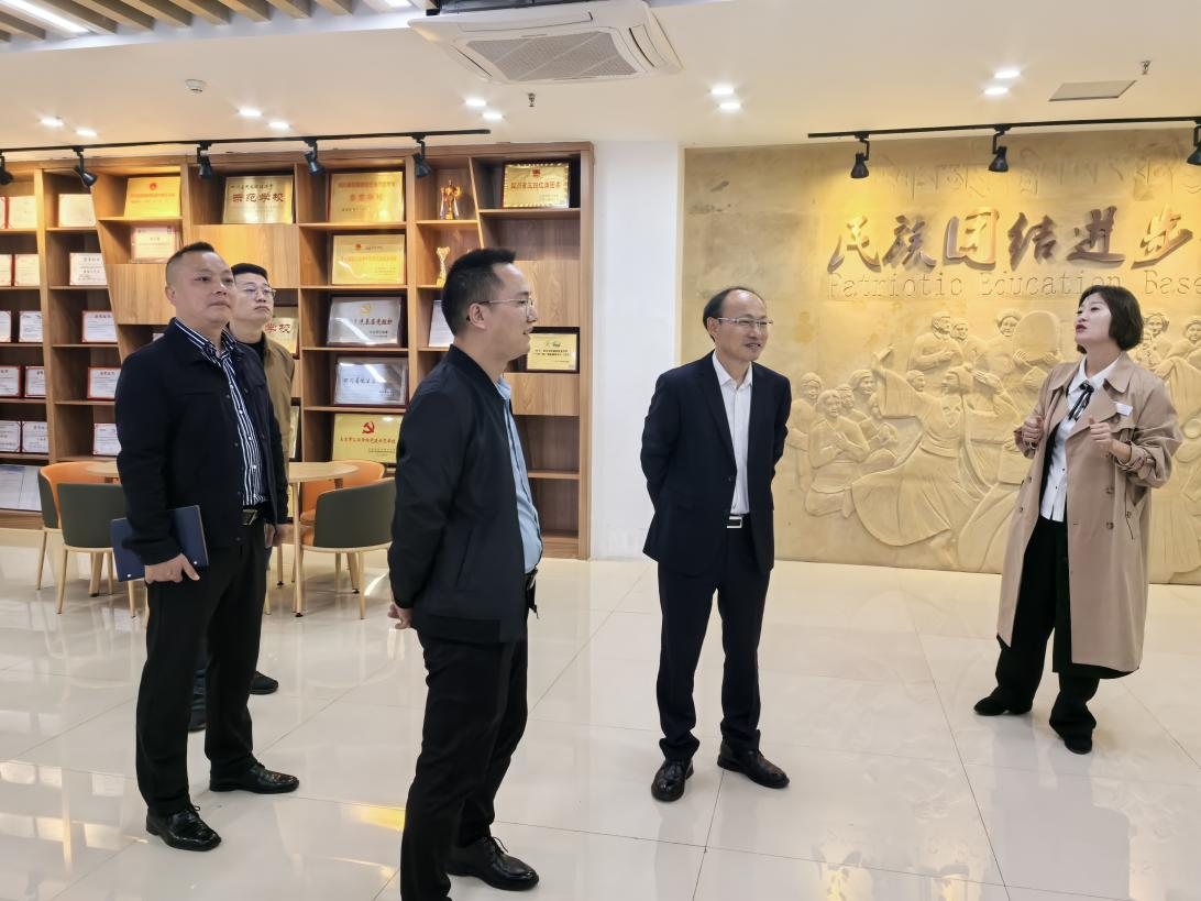 调研组首先参观了四川卫生康复职业学院的校园文化建设成果和民族团结进步爱国主义教育基地。通过听取学院宣传部部长赵天成的详细介绍,调研组深入了解了学院如何将民族团结教育融入日常教学、学生活动和校园文化之中,形成了独特的“四阶段递进式全程教育”的民族团结教育模式以及取得的工作成效。随后,双方举行了座谈交流会。会上,四川卫生康复职业学院分享了在创建民族团结进步示范单位过程中的经验做法,包括建立健全工作机制、创新民族团结教育形式、搭建各民族学生交流平台、开展丰富多彩的民族文化活动等内容。