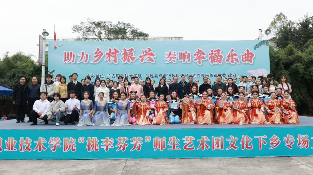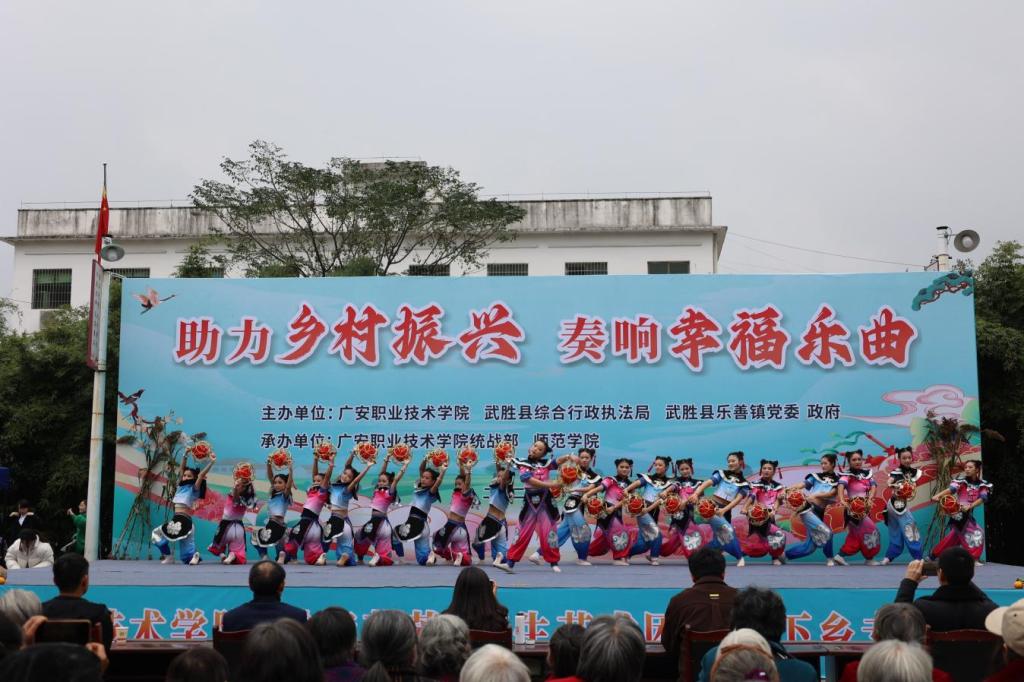 11月22日,党委委员、统战部部长杨建华带领师范学院“桃李芬芳”艺术团到武胜县乐善镇松树林村开展“助力乡村振兴,奏响幸福乐曲”送文化下乡活动。