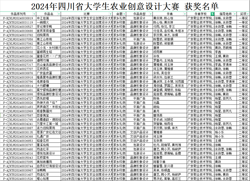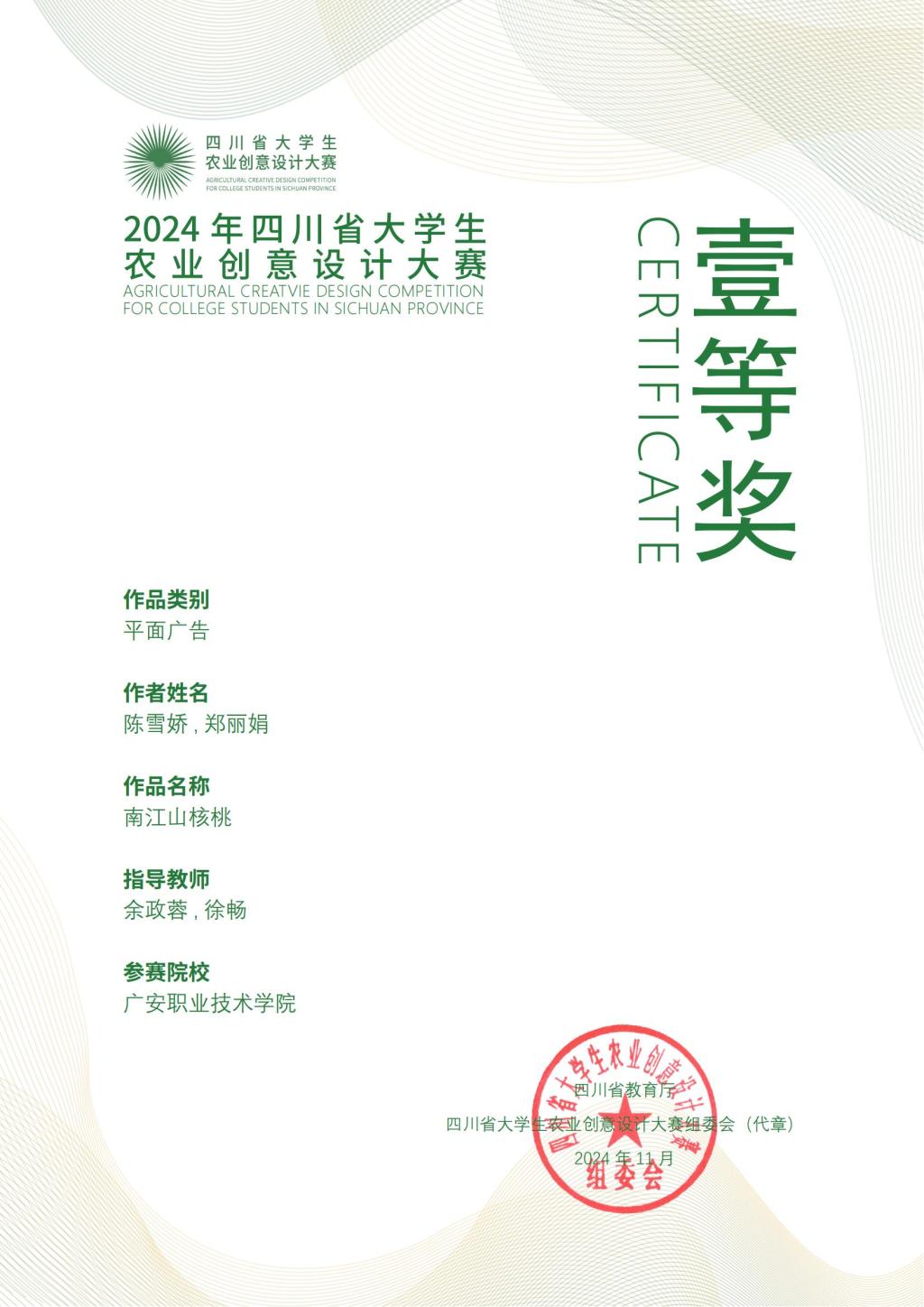 近日,由四川省教育厅主办四川农业大学承办的2024年四川省大学生农业创意设计大赛落下帷幕,kaiyun官网学生凭借出色的创意与专业技能在众多参赛者中脱颖而出。学校广告艺术设计专业、动漫制作技术专业学生积极备赛、踊跃参与,在此次大赛中载誉而归,共荣获一等奖6项、二等奖24项、三等奖30项。