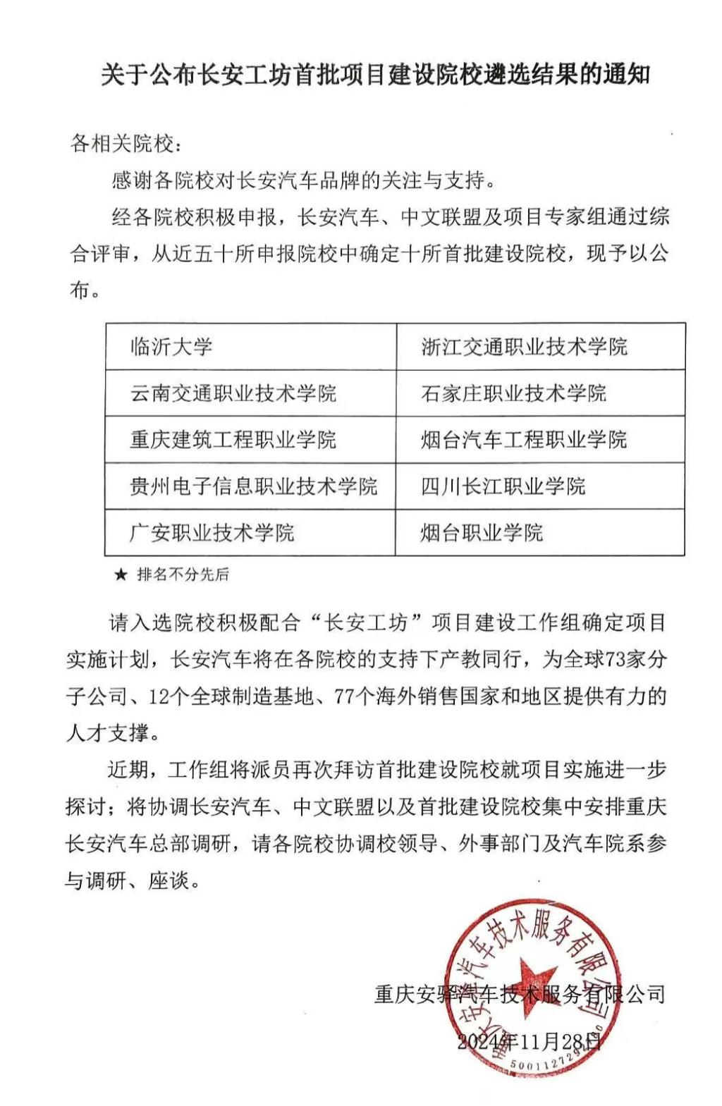 “长安工坊”是由重庆长安汽车股份有限公司联合教育部中外语言交流合作中心中文联盟共同推出国内产教融合、职业教育随企出海的示范性职业教育成果,旨在结合长安汽车国际布局,联合外方教育部门和院校共同培养一批精通中文、了解中国文化的高技能人才。
