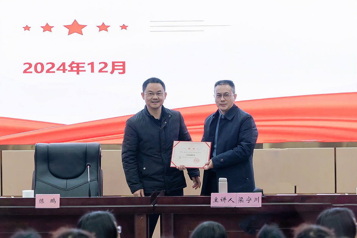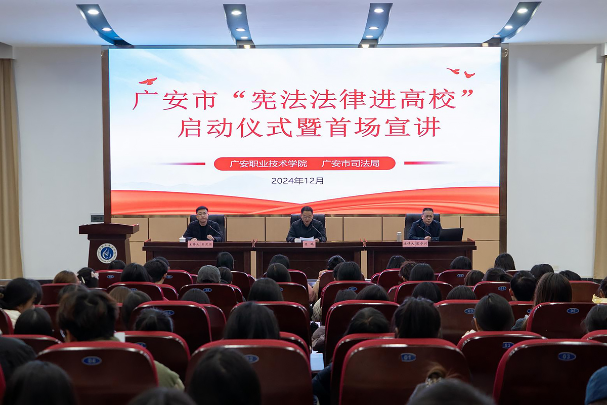 在第十一个国家宪法日即将到来之际,为深入学习贯彻党的二十届三中全会精神,突出学习宣传习近平法治思想,引导广大师生尊法学法守法用法。12月3日,kaiyun登录中国入口登录、广安市司法局联合开展“宪法法律进高校”活动,广安市委依法治市办公室副主任、广安市司法局副局长梁宁川受邀到校作“学思践悟习近平法治思想用法治护航青春”专题讲座。学校党委副书记陈鹏致辞,并为梁宁川同志颁发了法治副校长荣誉证书。