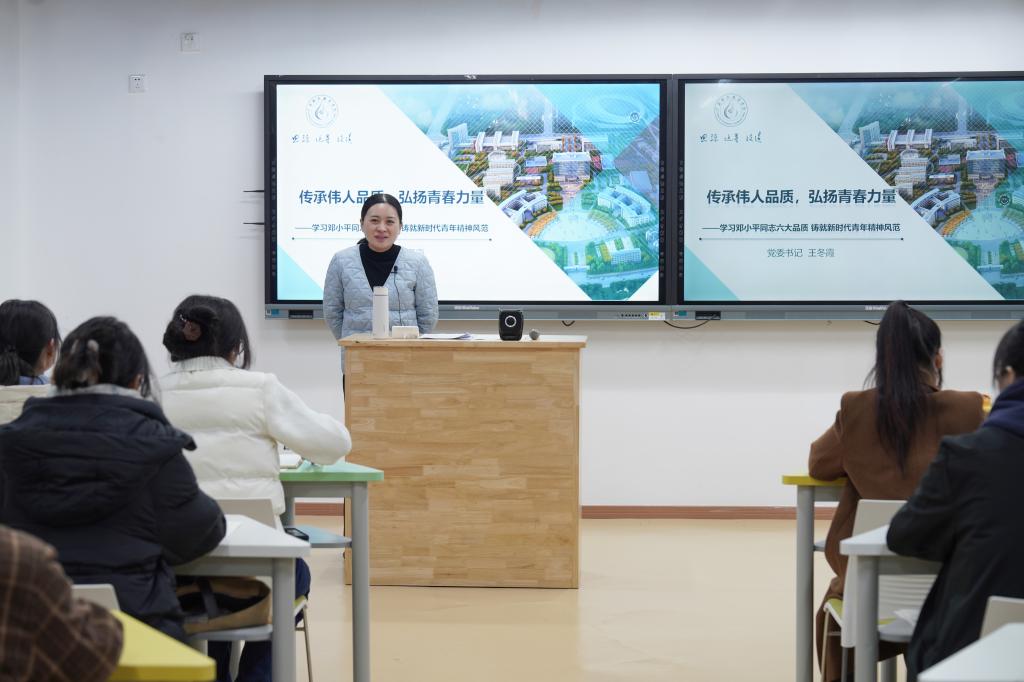 王冬霞结合当前时代背景和学生实际,深入剖析了伟人优秀品质的丰富内涵和时代价值。她鼓励学生们要勇于担当、团结协作、淡泊名利,以坚定的理想信念引领人生航向;要牢记“从群众中来,到群众中去”的群众路线,以实际行动践行全心全意为人民服务的宗旨;要坚持实事求是的原则,不唯书、不唯上、只唯实,以实际行动推动社会的进步和发展;要敢于打破常规、勇于探索未知领域,以创新精神为国家和民族的发展贡献自己的力量;要关注世界、国家、社会的发展趋势,把自己放在中华民族伟大复兴的进程中思考未来,以宽广的胸怀和长远的眼光谋划人生道路;要学习邓小平同志的坦荡无私精神,始终保持平和心态、看淡个人进退得失,心无旁骛地为国家和人民做实事、做好事。最后,她勉励学生们要追寻伟人足迹,继承伟人遗志,学习伟人品格,努力成长为“有理想、敢担当、能吃苦、肯奋斗”的新时代好青年。