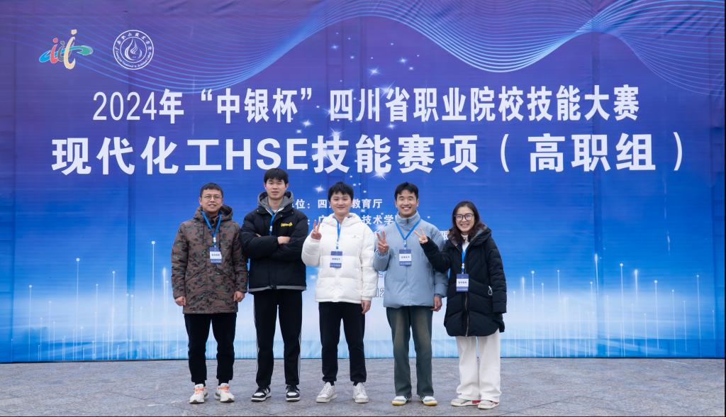 现代化工HSE技能赛项设置化工过程安全分析技术和化工生产应急处置两个赛项内容,通过竞赛,实现专业与产业对接、课程内容与职业标准对接、教学过程与生产过程对接,引领专业建设和教学改革;将劳动教育、工匠精神、团队意识、职业道德等理念有机融入竞赛过程,构建以赛促教、以赛促学、以赛促建、以赛育人的良好教育教学环境;实现竞赛内容向教学改革的成果转化,促进职普融通、产教融合、科创融汇,达到产教协同育人目标。经过激烈角逐,由吴珣、王丰、王潇、陈国强老师指导的应用化工技术专业学生温国豪、刘云飞、吴忠兵、卢垠西、陈志鹏、庞晓分别荣获一等奖。