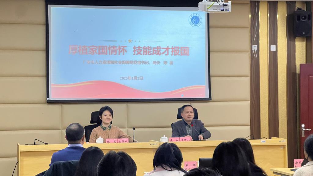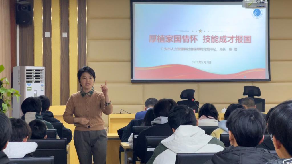 1月2日晚在九思楼209会议室,市人力资源社会保障局党组书记、局长陈君以“厚植家国情怀技能成才报国”为主题,为技师学院师生讲授思想政治课。
