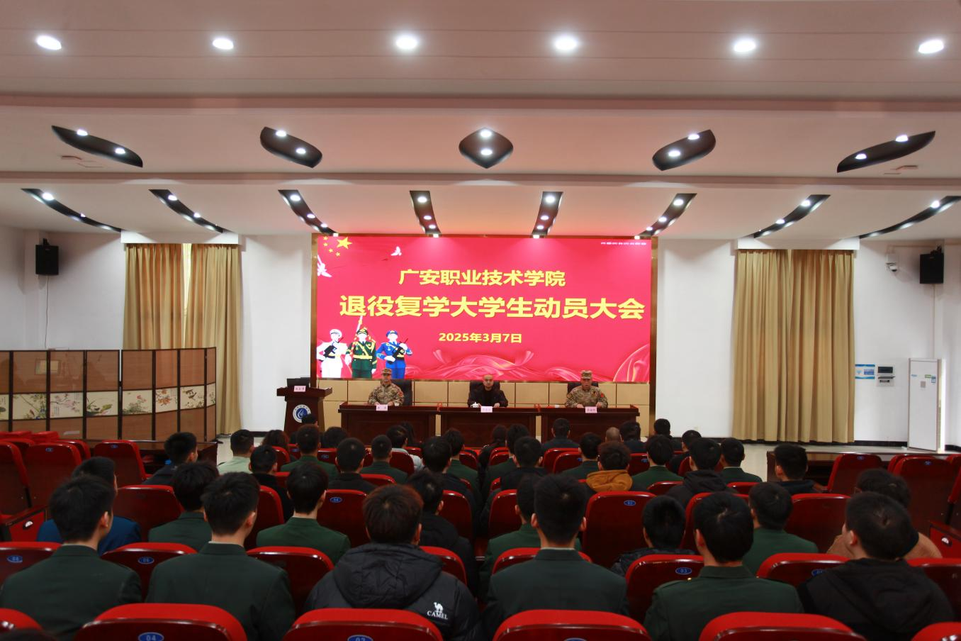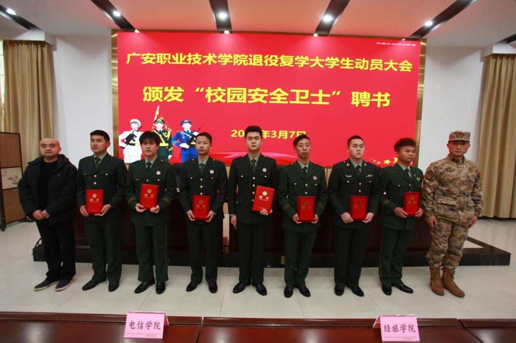 退役复学大学生是国家的宝贵财富,也是学校的骄傲,为了更好地发挥退役复学大学生的模范带头作用,积极投身学校的学习生活,参与学校的国防教育和平安校园建设等工作,学校于3月7日组织召开了“退役不褪色、校园续风采”退役复学大学生动员大会,会议由学校武装部部长、保卫处处长李海明主持,学校党委委员、副校长冉嘉洛出席大会并作动员讲话。