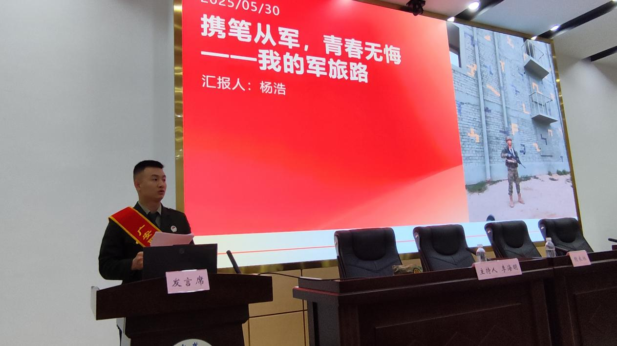 退役复学学生代表游显登、杨浩上台分享了个人从军经历。他们用朴实而真挚的语言,讲述自己在部队中艰苦训练、多彩生活,以及收获的成长与蜕变,并呼吁同学们踊跃报名、端起钢枪、保家卫国,实现人生理想。这些亲身经历让同学们真切感受到军队生活的多姿多彩,增强了同学们对军营的向往。