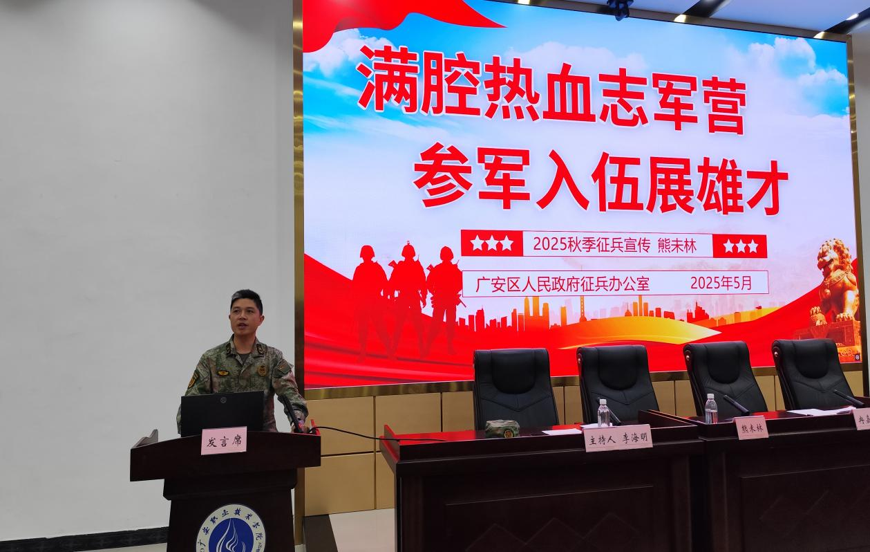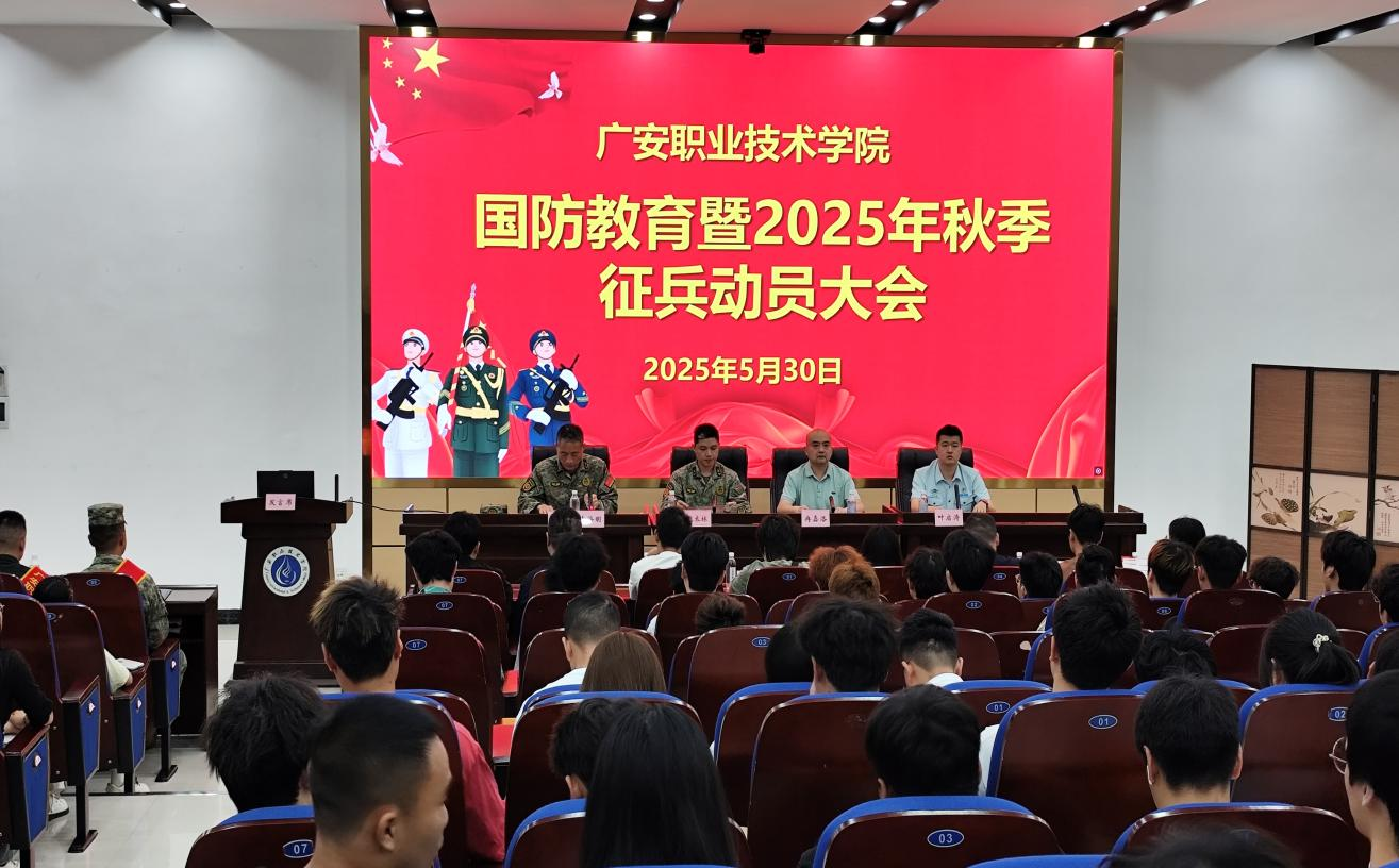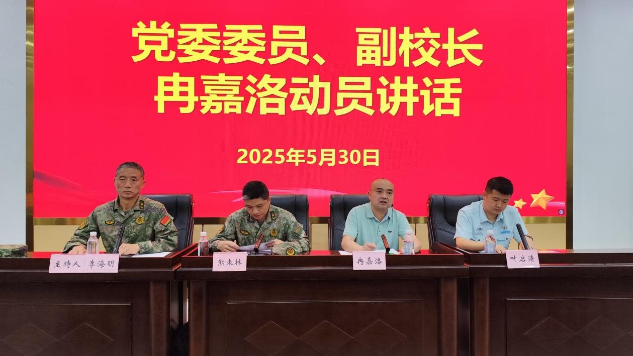 5月30日上午,学校在先圣厅组织召开国防教育暨2025年秋季征兵动员会,学校党委委员、副校长冉嘉洛出席大会并作动员讲话,广安区人武部参谋熊未林、叶启涛与会宣讲政策,会议由学校武装部部长、保卫处处长李海明主持。