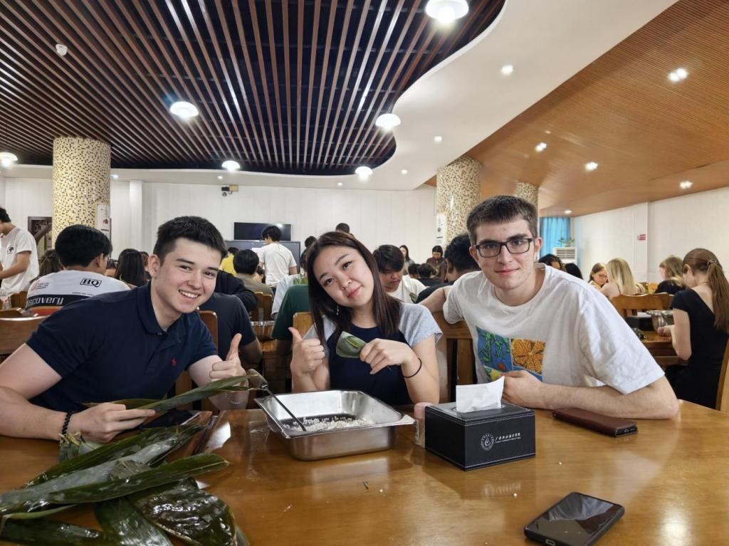 文化润心田,友谊共绵长。活动落幕,留学生们仍沉浸在浓厚的文化氛围中。来自哈萨克斯坦的迪安娜同学兴奋地分享:“第一次亲手包粽子太奇妙了!不仅尝到了美味,更读懂了粽子背后的家国情怀。”泰国学生金宝则对龙舟精神印象深刻:“‘逆水行舟’的智慧,会一直激励我的学习之路。”小小的粽子与彩绳,此刻已成为传递中华温情、联结四海情谊的独特信物。