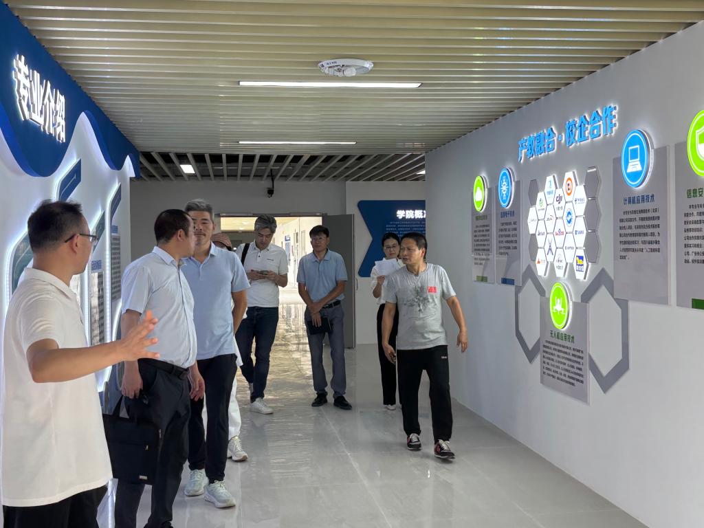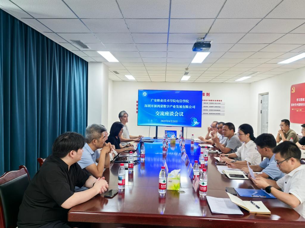考察调研组参观了电子与信息工程学院实训室,对学院实验实训条件给予了充分肯定。座谈会上,汤浩竹介绍了深圳开鸿公司产业布局、开鸿产业学院、开鸿课程体系、双师团队建设方案、人才认证体系和开鸿智慧场景等,并希望与学校在人才培养方案制定、课程体系优化、教学团队建设、实训基地建设以及订单班培养方面展开深入合作。