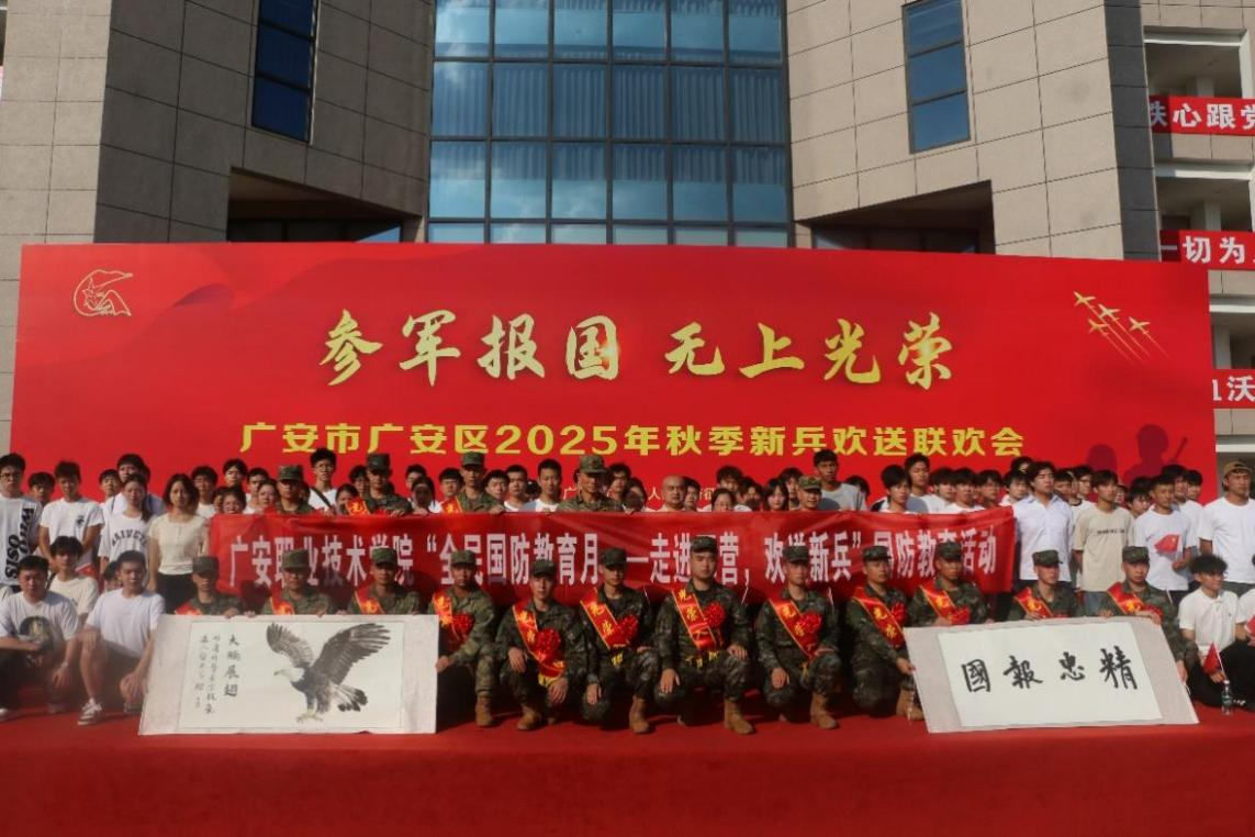 活动尾声,全体学生代表与即将踏上征程的入伍新兵们共同合影留念。镜头定格在莘莘学子与热血新兵的青春笑脸,浓厚营造“携笔从戎、无上光荣”的崇高氛围。
