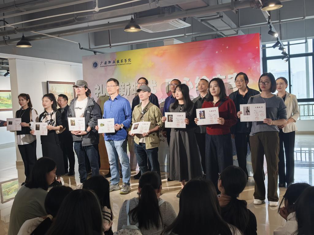 出席嘉宾为入展艺术家代表颁发作品入选证书,表彰其通过艺术创作反映广安在新时代高质量发展的贡献;参展艺术家代表在发言中分享了创作感悟,表达以艺术服务人民、讴歌时代的初心。