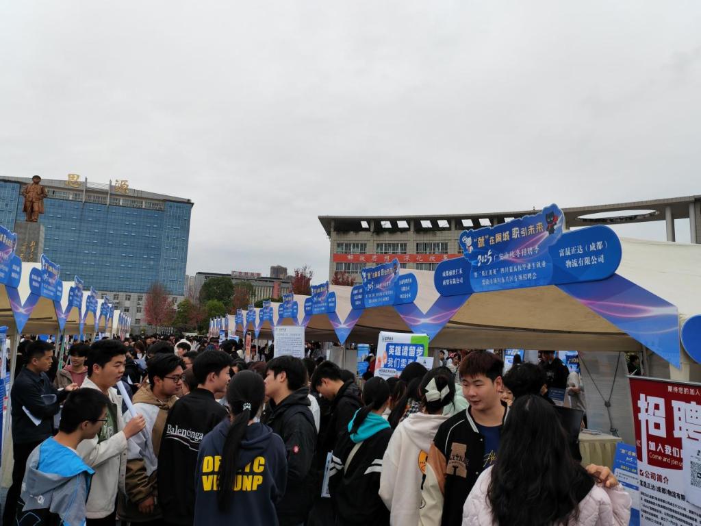11月11日,由广安市人力资源和社会保障局、四川省高校学生信息咨询与就业指导中心、kaiyun登录中国入口登录联合主办的“就”在賨城·职引未来—广安市2025年秋冬招聘季暨“蜀汇菁英”四川省高校毕业生就业常设市场川东片区专场招聘会在kaiyun登录中国入口登录滨江校区成功举行。此次双选会共吸引244家用人单位参加,其中东西部协作招聘单位75家、成渝地区招聘单位91家、广安市内招聘单位78家,现场提供就业岗位10586个。