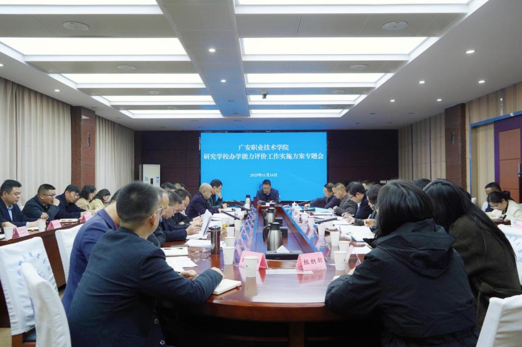 11月24日下午,学校高等职业学校办学能力评价工作实施方案专题研究会在春晖楼四楼会议室召开。学校党委副书记、校长王义全出席会议并讲话,会议由党委委员、副校长李俊泓主持。