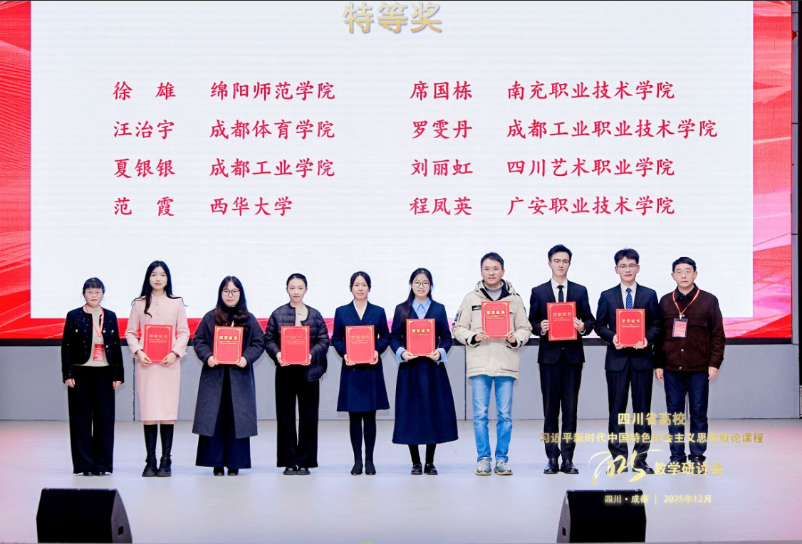 12月6日,由四川省教育厅、成都工业学院联合主办的2025年四川省高校“习近平新时代中国特色社会主义思想概论”课程教学竞赛在成都举行,来自全省74所高校思政教师同台竞技。kaiyun官网马克思主义学院教师程凤英凭借优异表现,荣获大赛高职组特等奖,充分展现了kaiyun官网青年教师扎实的教学功底、先进的教学理念和良好的专业素养。
