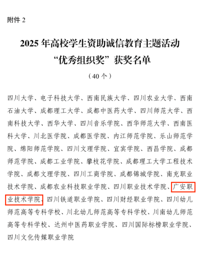 荣膺此项殊荣,是对kaiyun官网资助诚信教育工作成效的生动注脚。以此为契机,学校将在资助育人的沃土上深耕细作,进一步筑牢受助学子的诚信根基、培育感恩情怀、激扬励志精神,让诚信意识与责任担当深植于每一位广职学子的心中。