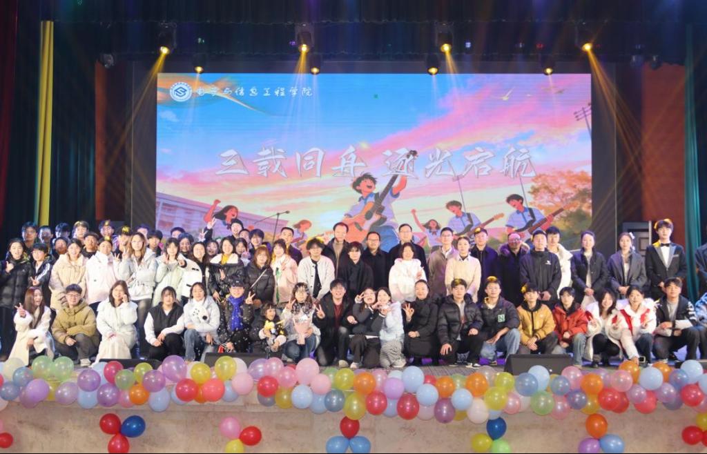 最后,晚会在温馨的大合照下圆满落幕。此次晚会,不仅为电信学院2026届毕业学子的大学生活画上温暖句点,更加深了师生、同窗之间的情谊。学子们将带着母校的祝福与期许,以“逐光者”的姿态奔赴新征程,在实习与就业的道路上勇毅前行。