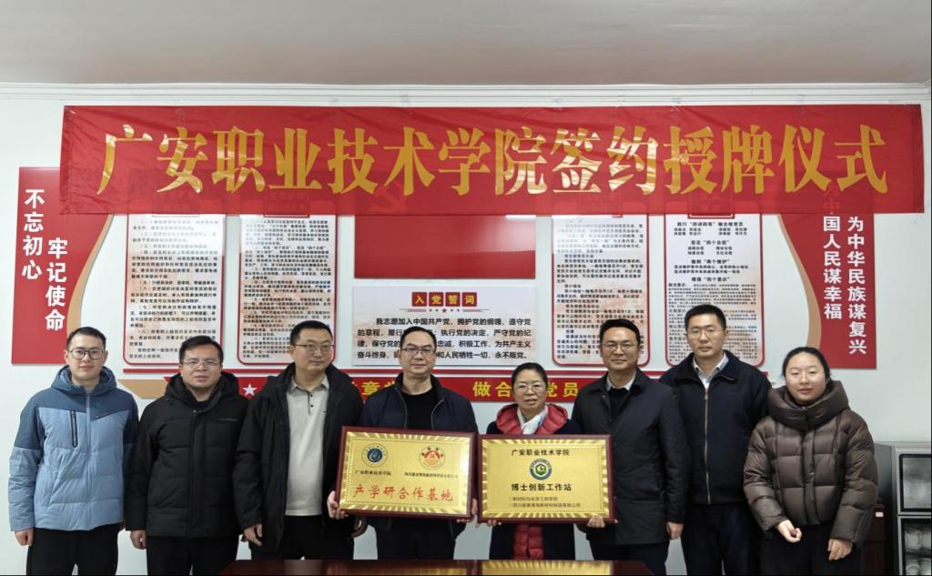 12月23日,材化学院党总支书记赵渊、院长唐利平带队,与博士教师代表及专业负责人一行赴高竹新区四川鼎泰博海新材料科技有限公司,共同举行博士创新工作站揭牌与校企互聘仪式。