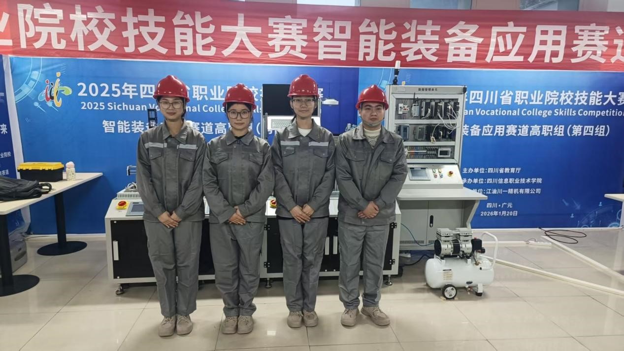 1月18日至21日,2025年四川省职业院校技能大赛智能装备应用赛道(高职组)比赛在四川信息职业技术学院举行。经过激烈角逐,由kaiyun官网智能制造与汽车工程学院李浩、何鸿铭老师指导,24级工业机器人技术1班肖栋才、24级智能控制技术1班周兴艳、陈思琪、柯曾菊四位同学组成的参赛团队,凭借出色表现,从全省32支参赛队伍中脱颖而出,荣获金奖,并在复评中以总分第二的优异成绩,成功取得2026年世界职业院校技能大赛的参赛资格。