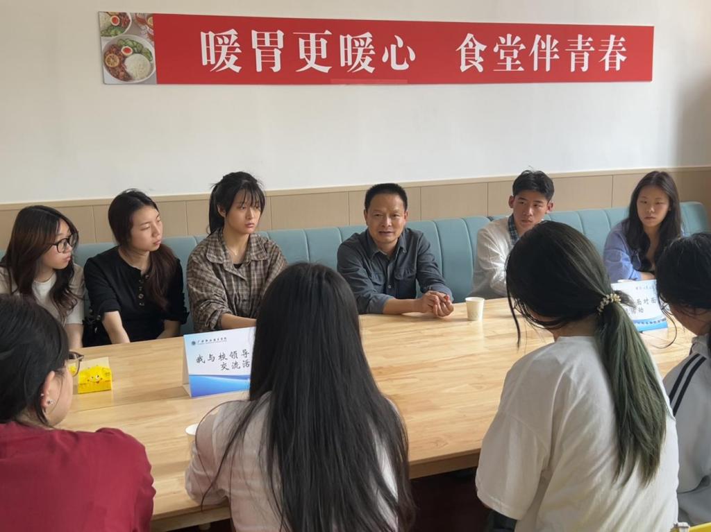 4月10日中午,学校“书记校长午餐会”在滨江校区稻香园学生食堂举行。校党委委员、副校长袁驰与新材料与化学工程学院学生代表围坐一堂,共进午餐,就学生普遍关心的学业规划、专业发展、求职就业等话题展开深入交流。