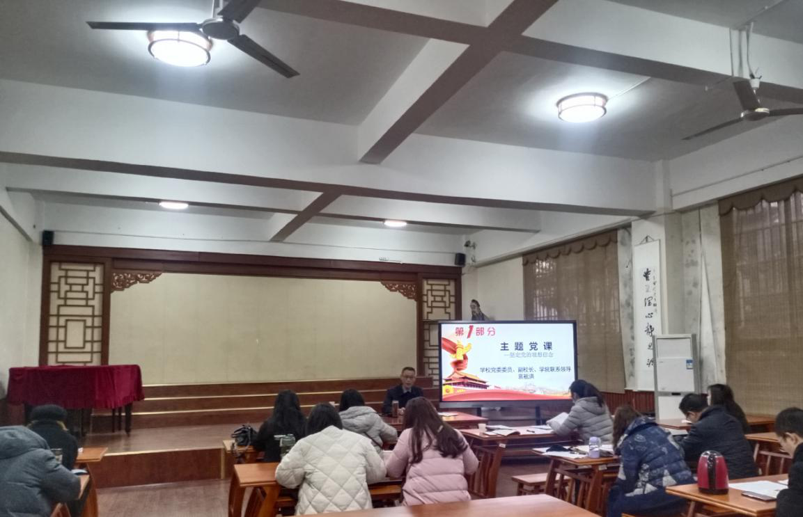 12月8日下午,学校党委委员、副校长袁祖洪为艺术学院全体教师党员上“坚定党的理想信念”专题教育党课。